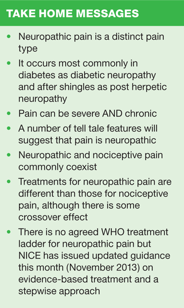 Neuropathic pain is common.1,2 The practice nurse will frequently see patients who are in pain, sometimes incidental to the consultation (they might have come in for a dressing, or a blood pressure review), but sometimes it will be central to their attendance.