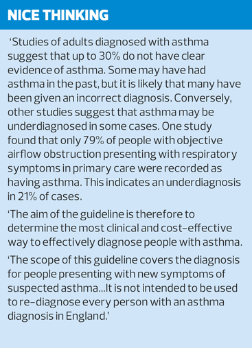 The draft NICE guidance on diagnosis and management of asthma – due to be published this month but currently on hold – poses a dilemma for general practice nurses because in so many areas it is at odds with the current BTS/SIGN guideline: what should we do?
