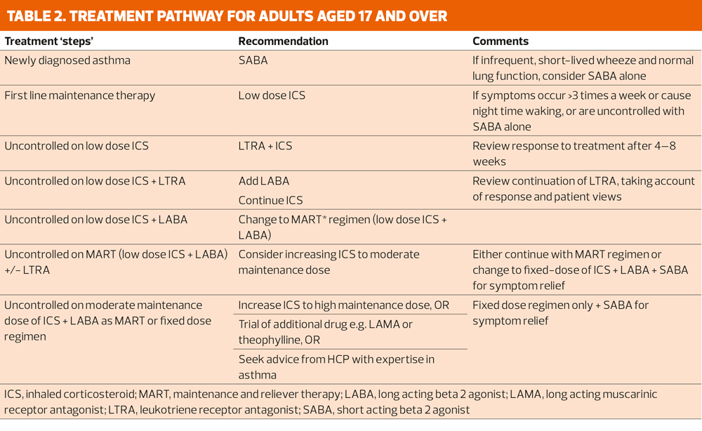 The treatment pathway for adults aged 17 and over is shown in Table 2.