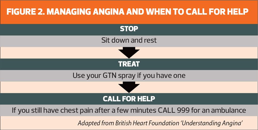 The common goals of angina management are to improve quality of life by reducing the number of angina episodes and the severity of symptoms, and to reduce the risk of acute cardiovascular events.It is essential that people with angina are aware of how to manage an episode and when to call for help (Figure 1).They should also be prescribed anti-anginal medication to reduce the number of episodes as well as secondary prevention therapies including an anti-platelet agent and lipid lowering medication (Figure 2).Revascularisation will usually only be considered where optimal medical therapy has failed to manage symptoms adequately.4