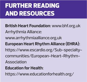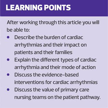 Despite tremendous advances in the detection and management of cardiac arrhythmias that enable patients to be diagnosed and successfully treated more quickly, arrhythmia still carries a risk of sudden cardiac death and the experience of arrhythmia remains frightening for many patients and their families. Primary care nursing teams play an important role in the detection and long-term monitoring of these patients