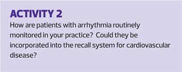 Patients with implanted devices will usually be monitored on a long-term basis by the implant centre, who will keep the patient’s GP updated with any changes. Patients with arrhythmia may have underlying cardiovascular disease and/or other long term conditions and be on the practice register for routine recall and review, but there may be some with primary rhythm disorders that do not fall into this group. Some will remain under the care of a cardiologist but it is worth considering how patients with arrhythmias are supported and monitored in primary care, particularly those without established disease that may fall outside of the clinical indicator requirements for the Quality and Outcomes Framework (see activities).