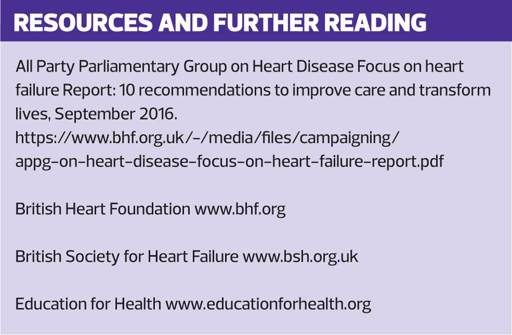 9. All Party Parliamentary Group on Heart Disease 2016 Focus on heart failure: 10 recommendations to improve care and transform lives, September 2016.