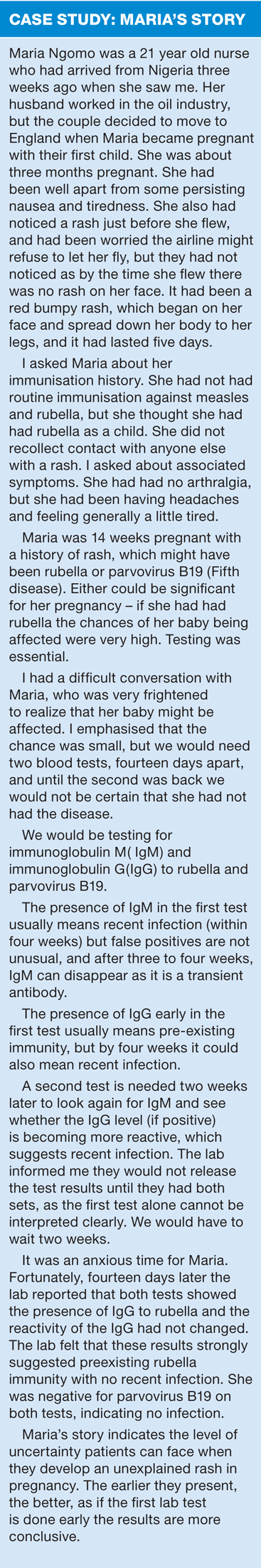 Rubella — or German measles — is now uncommon in the UK, although since the fall in MMR uptake cases have increased and there were 57 notifications in the first half of 2012.1
