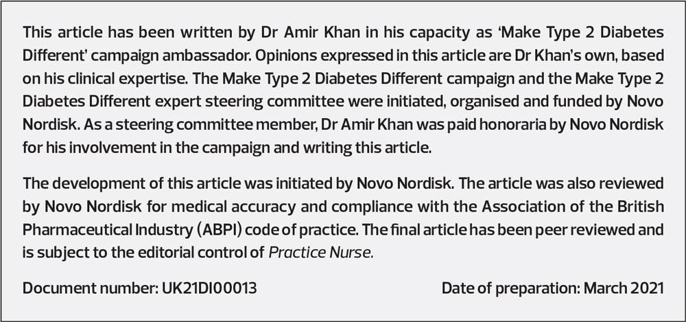 General practice nurses have a key role in managing people with T2D. Although we have seen the number of community-based diabetes nurse specialist posts increase, in truth with the rise in people with T2D and the frequency with which they present to primary care, most clinical staff will come into contact with a person who has T2D.