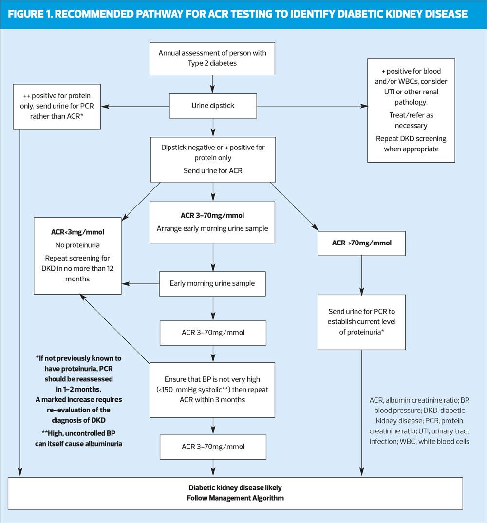 An abnormal ACR should prompt rigorous management aimed at mitigating vascular risk. The importance of a healthy lifestyle (smoking cessation, weight reduction and exercise) should be reiterated, and the quality of lipid and glycaemic control re-evaluated.