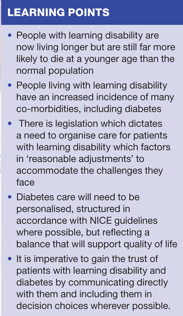 Learning disability and diabetes: addressing the challenges