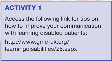 The General Medical Council has produced a comprehensive and useful guide to communicating with learning disabled people. (See Activity 1)