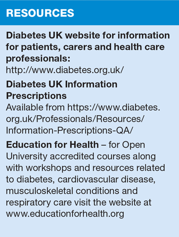 By providing these plans, people should be able to discuss the targets and priorities for treatment with their health care providers to ensure that they are at the centre of every decision being made and that they have ‘bought in’ to the aims and objectives of their care. The NHS Choices website has information on how to develop a care plan,35 and Diabetes UK has made available some free resources to help with planning how to best manage blood glucose, BP and lipids (see resources, below).