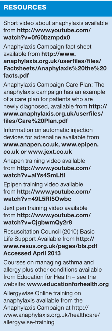3. Resuscitation Council UK. Emergency treatment of anaphylactic reactions: Guidelines for healthcare providers. 2012 update. Available at http://www.resus.org.uk/pages/reaction.pdf Accessed April 2013
