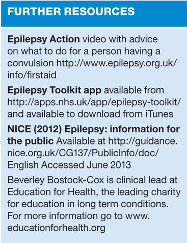 In Wendy's case swift assessment and management of the situation meant that she had an uneventful recovery after a few minutes and there was no need for admission. In people who suffer a seizure, the risk of status epilepticus should be borne in mind and initial management will include basic life support and decisions regarding the need for admission. Ongoing care is essential and will include optimisation of medication along with lifestyle advice; advice on employment and driving should be part of the annual review. With all of this, most people with epilepsy will be able to live full and symptom free lives.