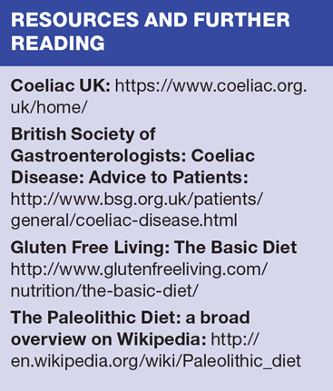Some dietitians have theorized that 10,000 years is insufficient for dietary adaptation through evolution — in other words gluten is a part of our diet to which we have not yet, as a species, fully adapted — and promote a 'Paleolithic' diet for health. There is, however, some disagreement about what a 'typical' diet would have been in the Paleolithic era. The proportion of the diet given to plant rather than animal products would have varied with climate and terrain. That said, Paleolithic man certainly did not eat the dairy food, modified grasses and protein food that form the main basis of the diet of many of us and our patients today. To complicate matters large numbers of people, particularly in the USA, now promote the idea of gluten-free eating as a healthier option for all.