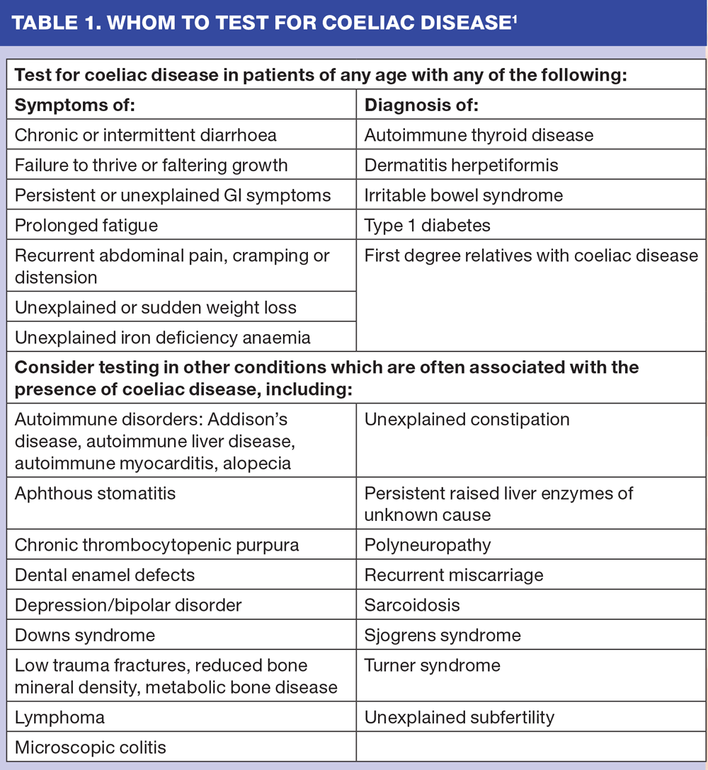NICE have issued guidance regarding who should be tested for coeliac disease. (Table 1)