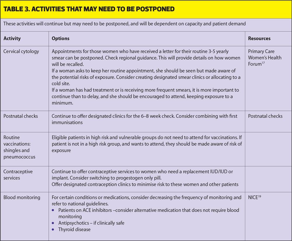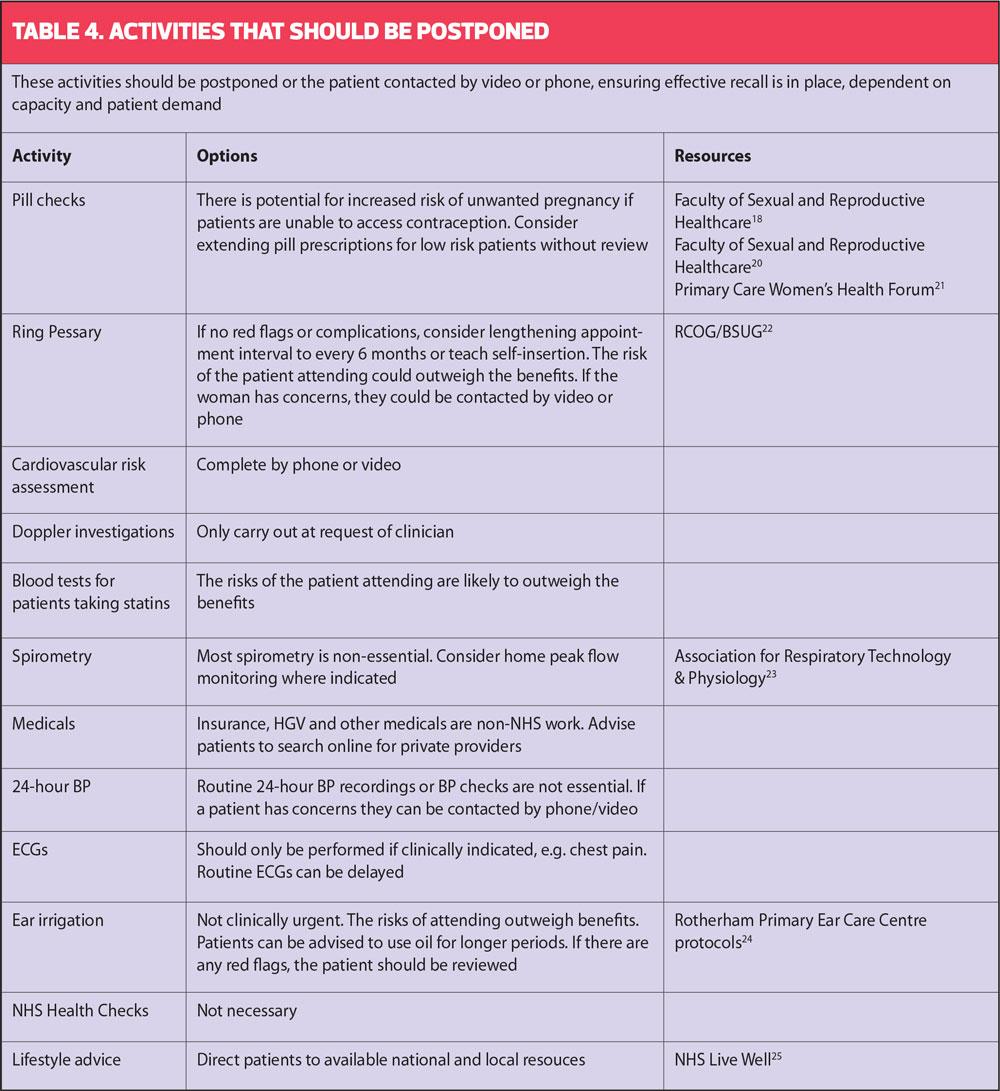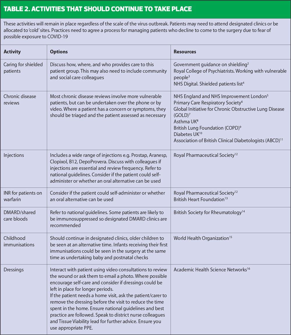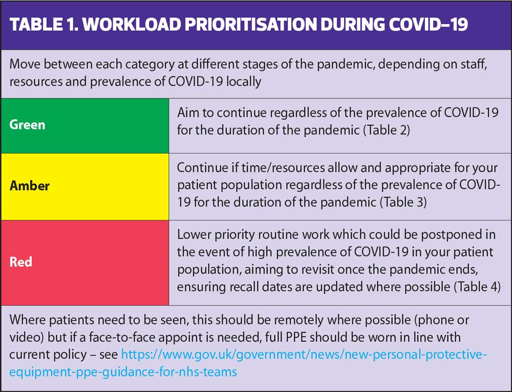 In March the RCGP and BMA produced Guidance on workload prioritisation during COVID-19 using a red, amber, green (RAG) rating system (Table 1).1