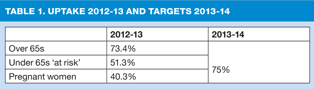 This season the DH has proposed that targets of 75% are reached in the uptake of seasonal flu vaccination for people aged 65 years and older, as recommended by the World Health Organization, and also to reach or exceed targets of 75% in those under 65 years with clinical conditions, and pregnant women.