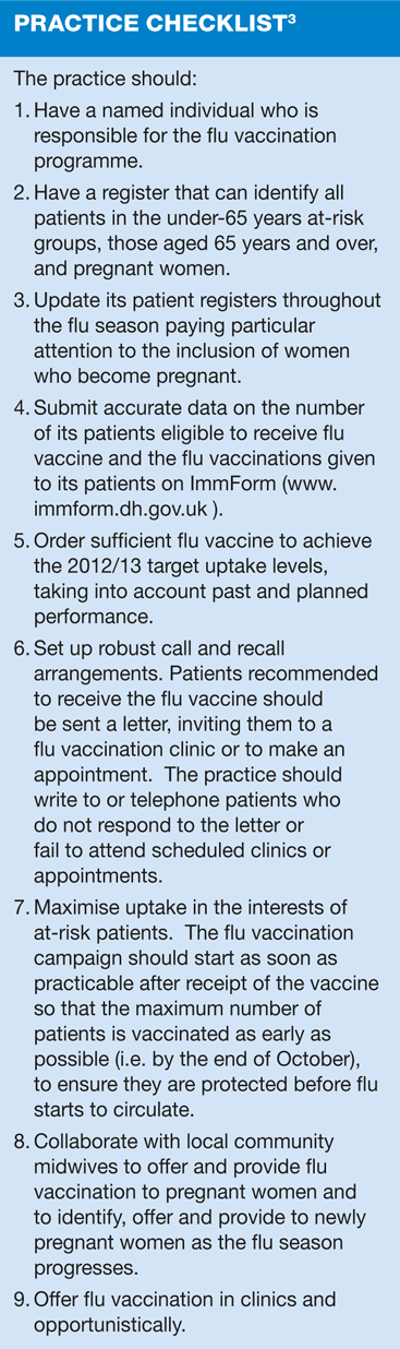 Although last year saw some of the lowest levels of flu on record the Department of Health (DH) is expecting practices to achieve higher uptake rates in all at-risk groups during the 2012/13 vaccination programme than ever before.