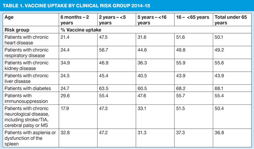 - Children aged between 6 months and 2 years, who are in a clinical risk group should also be immunised. Vaccine uptake is particularly low in the younger age groups with clinical conditions that put them at most risk of complications from flu (Table 1)