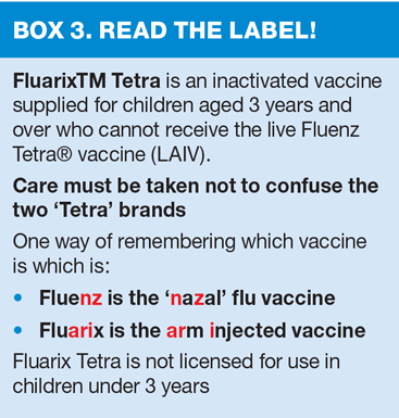 As quadrivalent vaccines may be better matched and therefore may provide better protection against the circulating B strain(s) than trivalent flu vaccines, the live attenuated intranasal vaccine (LAIV) offered to children aged 2 years and over is a quadrivalent vaccine, as is the inactivated vaccine recommended for children aged 3 years and above who cannot received live vaccine.