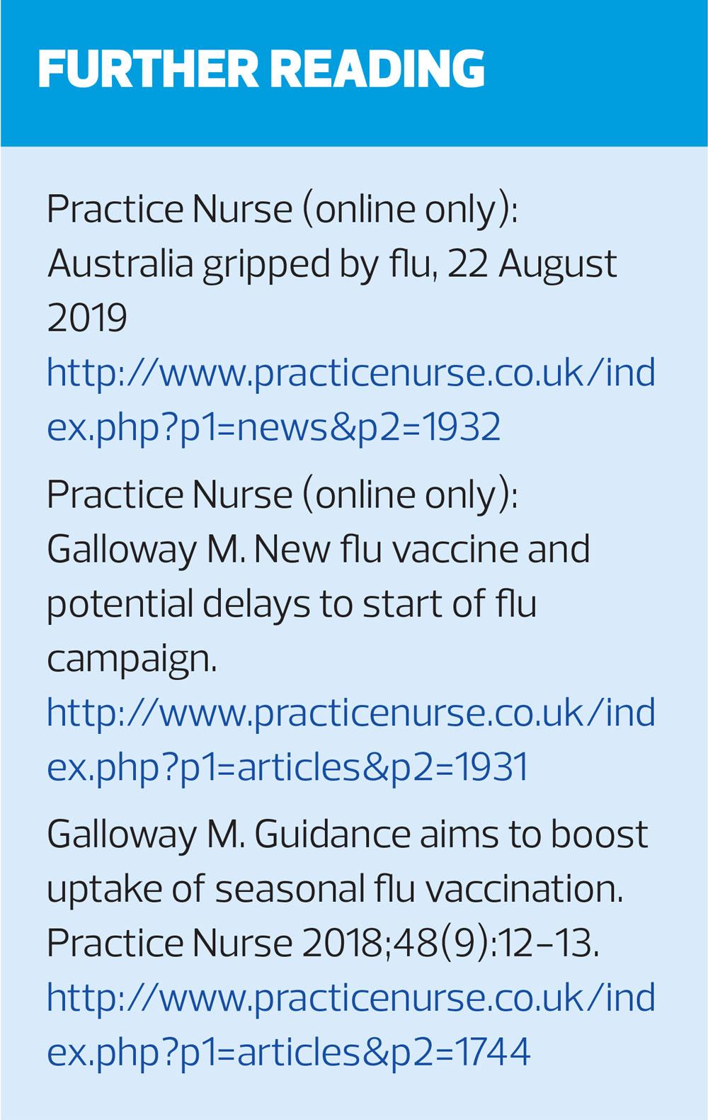1. NHS England. Annual flu letter, March 2019. https://www.england.nhs.uk/wp-content/uploads/2019/03/annual-national-flu-programme-2019-to-2020-1.pdf