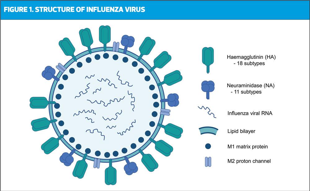 Influenza is a member of the Orthomyxoviridae viral family and is represented by the subtypes A, B, C and D.1,2 Influenza A and B are known to circulate and cause seasonal epidemics in humans; influenza C is rarely detected, and influenza D is not known to cause disease in humans.1 Seasonal circulation is often highly variable, with different countries experiencing different strain prevalence each year. Currently influenza A (H1N1 and H3N2) and B (Victoria and Yamagata) are in circulation within the human population.3
