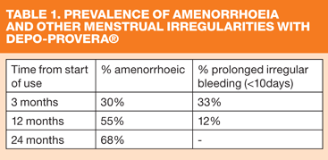 Effective counselling about potential adverse effects should be provided for any women wishing to consider Depo-Provera. This should include possible bleeding irregularities, weight gain, delayed return to fertility and effects on bone mineral density (BMD).