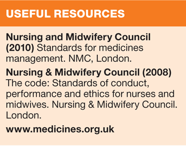 2.Nursing and Midwifery Council Standards for medicines management. London: Nursing & Midwifery Council; 2010