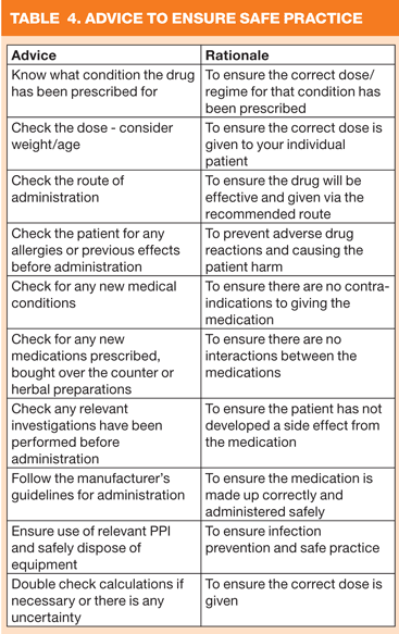 All registered nurses have a responsibility to ensure they maintain their professional competency and practise within the limitations of their competency. Regular review of the evidence supporting medication use and information sources such as the BNF or SPCs ensures practice is always current and up to date. Using a systematic approach and adopting safe practice principles, as with all drug administration, will help to ensure a good patient experience and reduce the potential for drug errors.