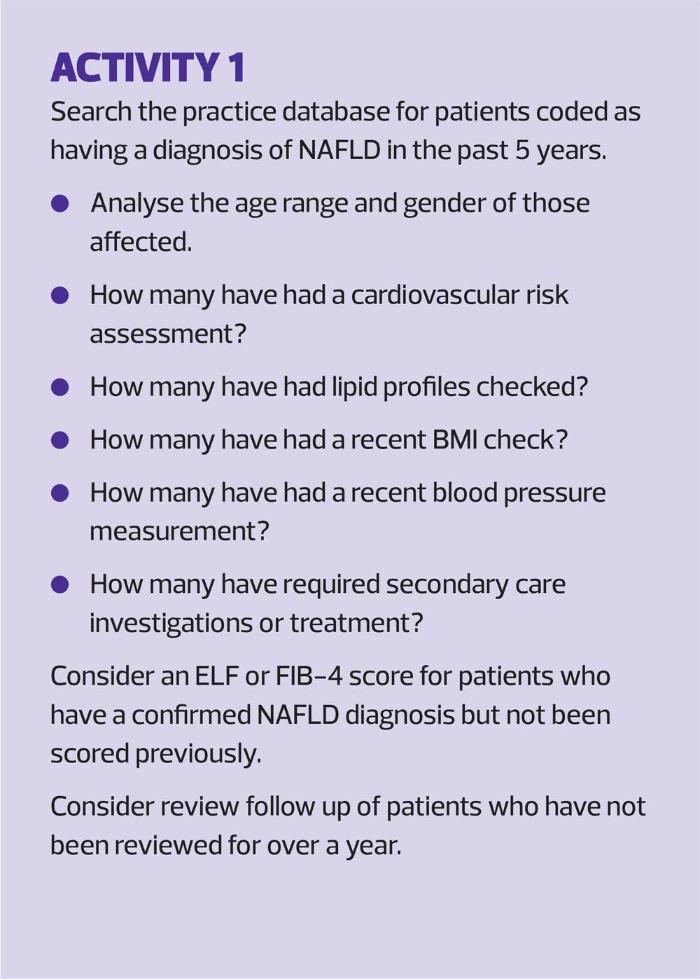 If a diagnosis of NAFLD is confirmed it is also important that the risk of advanced liver fibrosis is assessed using a non-invasive scoring system. (See Resources and Further Reading.)