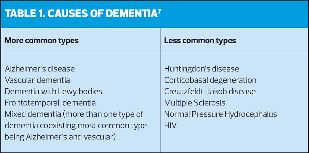 Dementia is an umbrella term used to describe a broad range of symptoms including memory loss, confusion, personality and behavioural changes and difficulty carrying out everyday tasks.7 Dementia is a chronic, life-limiting condition caused by underlying diseases and brain disorders such as Alzheimer’s disease and vascular disease. Dementia and Alzheimer’s disease remained the leading cause of death in England and Wales, accounting for 12.0% of all deaths registered in 2016.8