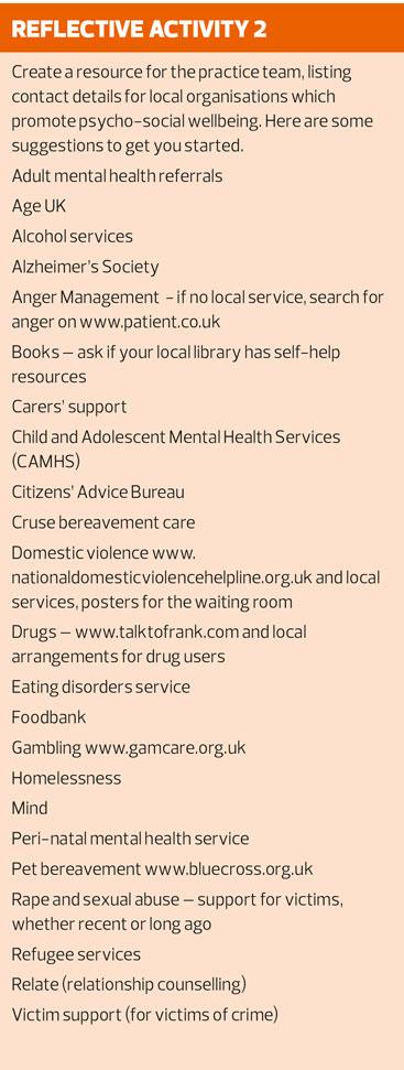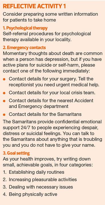 Psychological therapies are best started early and we encourage people to self-refer. You need to have leaflets readily available, describing the services in your area. Then you can support your patients through their process of recovery.