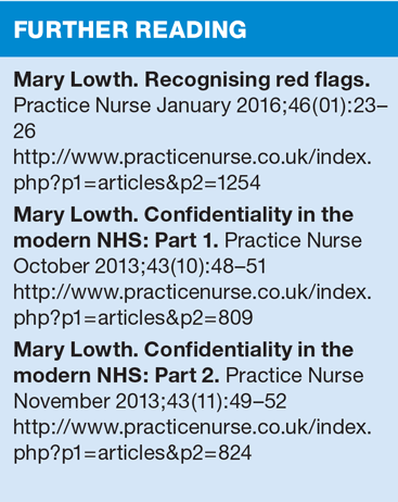 You may find the recent Practice Nurse article on Recognising Red Flags helpful for reflection (January 2016).