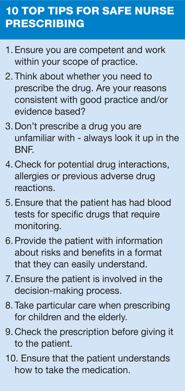 Ten years ago, nurse prescribing was heavily restricted, yet now nurses are able to prescribe all of the drugs in the BNF. So how do nurse prescribers ensure that they are prescribing safely and within their level of competence? Diane Baylis, a registered nurse and Clinical Risk Manager at the Medical Protection Society (MPS), explores some of the pitfalls.