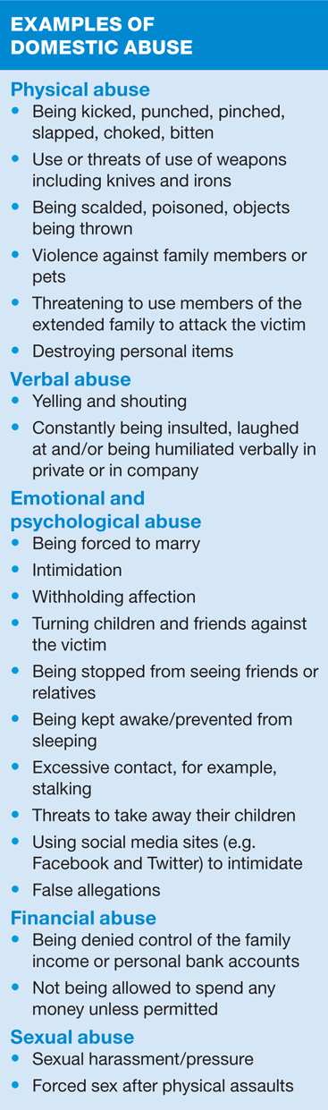 Most nurses working in general practice will come across domestic abuse at some point: the woman who presents for cervical cytology with unexplained bruising on her legs, the toddler who presents with burns in odd places from a pair of hair straighteners, the four year old who doesn't cry during immunisation. But how often do we encounter abuse in our male patients? Would we recognise it when a man presents with domestic abuse perpetrated by his partner? Yet this problem is far more common than most of us realise.
