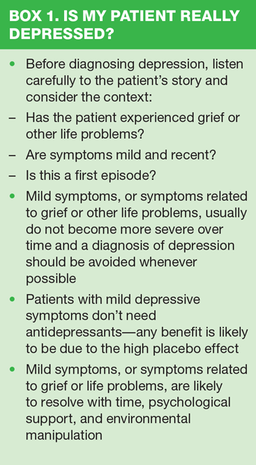 Box 1 gives some useful pointers about considering whether or not someone who appears to be low in mood is suffering from depression.