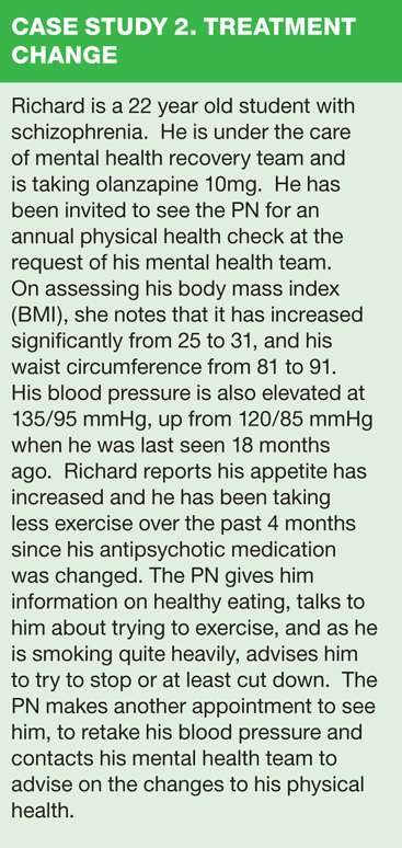 Over the past 20 years the life expectancy of people with a serious mental illness has declined to 20% below that of the general population. So what can practice nurses do to help improve the physical health of patients with a psychiatric disorder?