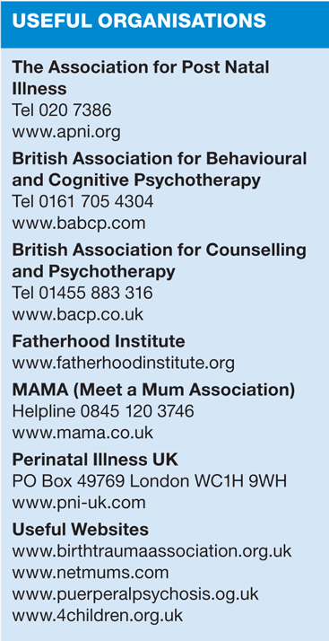 PND can arise whatever the circumstances, and whether or not the baby is the first. Often there is no obvious reason for PND and there is no single cause, but some possibilities may account for it.3 However much a woman longs for a baby, and however uncomplicated the birth, major changes take place which affect self esteem and how a woman feels about herself.1 Body shape alters, relationships with friends, family, and partner can be affected, sex life and career status may be disrupted and sleep will be disturbed. If there are extra stresses such as illness, bereavement, moving house, loss of employment or poverty, PND is more likely.2 Women who have a history of depression or other mental health problems are at particular risk, as are those without support from family or friends — a sense of isolation can be the most stressful aspect of mothering.1,3 An unsupportive or abusive partner, being very young, having a sick or premature baby can also contribute to PND.1 Childhood experiences such as early separation or abuse, or loss of a parent, may surface and can be very troubling.2 Physical problems such as an under-active thyroid can also be a factor.3 Women such as recent immigrants, refugees or asylum seekers giving birth in an unfamiliar environment are more vulnerable to PND.2 A difficult labour can play a part in PND, and when labour is traumatic, there is the added risk of post traumatic stress disorder characterised by flashbacks, nightmares and a feeling the experience is being constantly repeated, playing like a film in the mind.6
