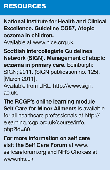 Patients should seek medical advice if they experience any of the red flag symptoms listed in the box, have problems sleeping, suffer psychologically or if their eczema becomes weepy or painful.