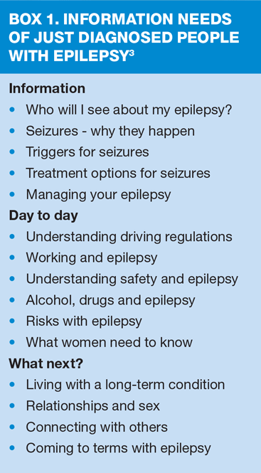 Developing epilepsy has lifelong implications, and it may well be that the practice nurse will be called upon by patients for support after the diagnosis has been made, and at other times. The Epilepsy Society3 has produced a free ‘Just Diagnosed’ pack dealing with the sort of issues that concern patients who have recently received the diagnosis (see Box 1). Life will probably not be the same again. The seizures may not be fully controlled. Any medication required may have side effects. There may be effects on work, and especially driving. The recently diagnosed may carry the same prejudices about epilepsy as others in the population, and feel stigmatised. In many respects the adjustment process can be seen as a loss reaction: loss of health; loss of employment and life opportunities; loss of control; loss of self-image.