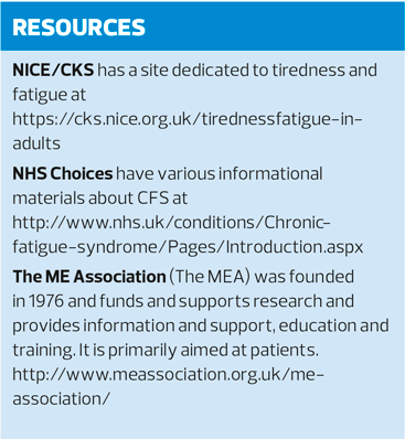 1. NICE CKS Tiredness/fatigue in adults. https://cks.nice.org.uk/tirednessfatigue-in-adults