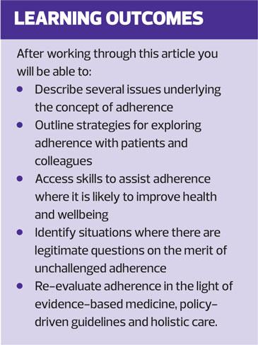 Adherence and non-adherence are best considered in the light of evidence-based medicine, policy-driven guidelines and holistic care for that individual at that time.