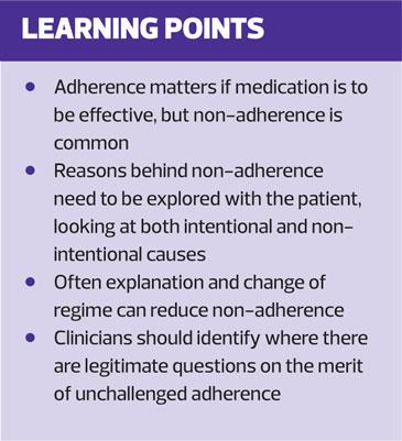 There are many reasons for medication not being taken as prescribed, and those reasons do not always divide neatly into intentional and unintentional non-adherence. Forgetting a tablet is far more likely if you do not have much confidence in its efficacy.3 How might one identify and explore the issues behind non-adherence in an individual or in a group of people?