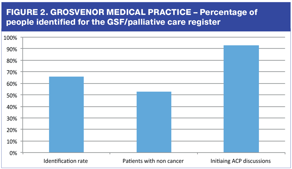 According to a national primary care survey, and recent localised QOF figures, only about a quarter of patients who die have been identified and included on the GP practice palliative/supportive care/GSF register as being likely to be in their final year of life, and only a quarter of these are non-cancer patients, so we clearly have some scope to improve.16 There is also evidence that early identification leads to more proactive, better coordinated care, with more people dying in their preferred place of care.4