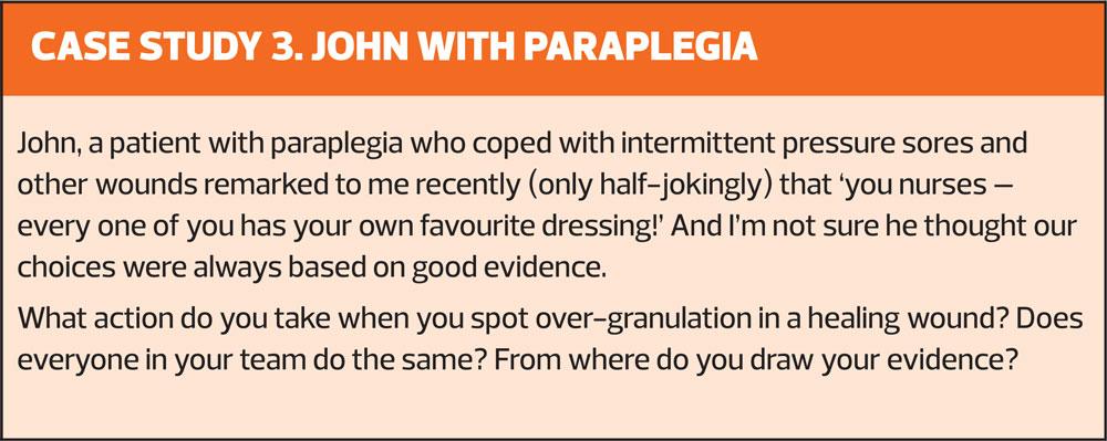 There are several papers in wound care journals,10-12 some of which promote particular products. The proposed causes of over-granulation, about which there is still uncertainty, are occlusive dressings leading to increased fluid in the tissues, or an inflammatory process due to infection or irritation.10 The consensus settles on: