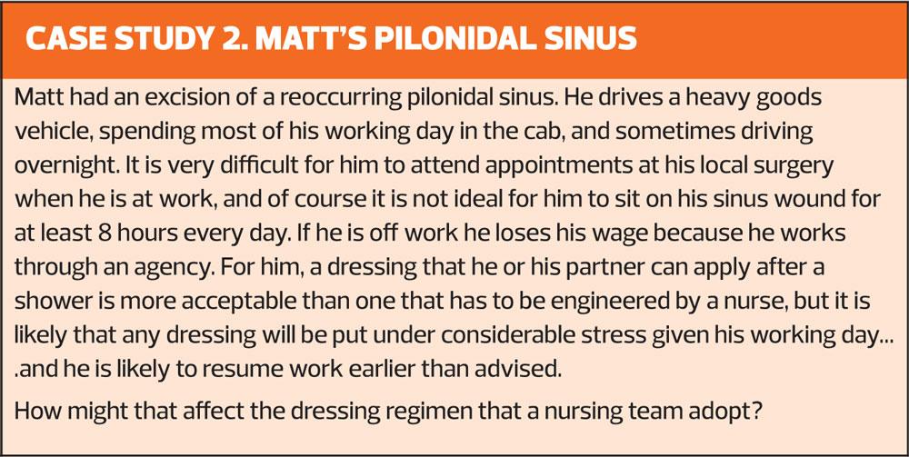 This is another poorly researched area that causes distress, frustration and many expensive wound care sessions for both patients and staff. It affects capacity for work, mobility and patient self-esteem, as well as the more obvious demands on time and comfort. (Case study 3)