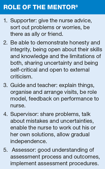 The NMC defines a mentor as ‘someone who facilitates learning, supervises and assess students in a practice setting’.1 A study to ascertain what makes effective mentoring concluded that it is a process that produces ‘effective students who, in turn, become competent, confident registrants, who will have mastered the art and craft of caring.’2