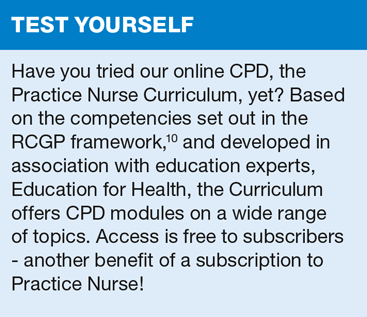 At present, Health Education England (HEE) is working on a project to develop a national education framework for general practice nurses. This will apply to the whole non-medical workforce, from healthcare assistants (HCAs) to advanced nurse practitioners. The project will develop professional education standards and an education service specification to create a national template, which can be adapted by employers and commissioners for local need.