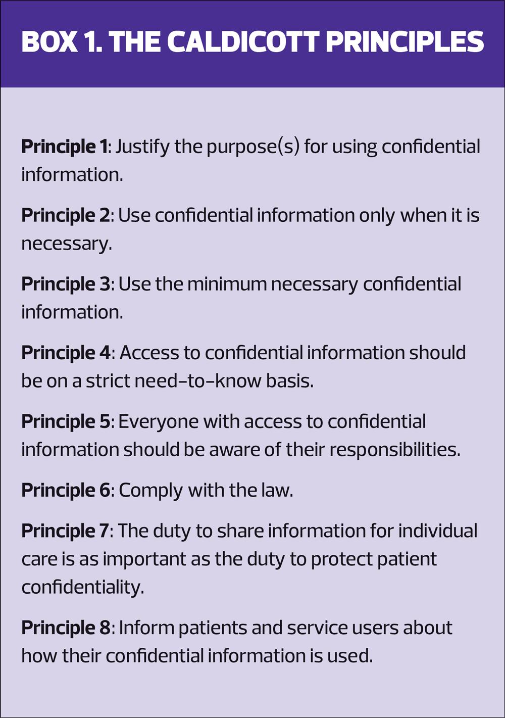 RESPECTING CONFIDENTIALITY – CALDICOTT AND BEYOND