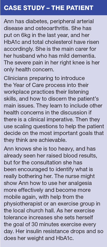 The Year of Care programme set out to provide a better way of empowering people with diabetes to manage their own health, thus improving their quality of life and health outcomes, and reducing health costs.4 Initially, this was a test of whether the chronic care model for diabetes could be implemented in routine general practice, with a vision that it could then be extended to cover other LTCs.