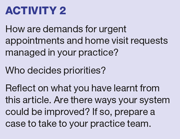 In most practices demand for urgent or on-the-day appointments is now at a level that has to be managed actively, according to clinical need. It is not enough to leave the system to find its own level, so that only the more demanding patients are seen – to do this often disadvantages those who need us the most.