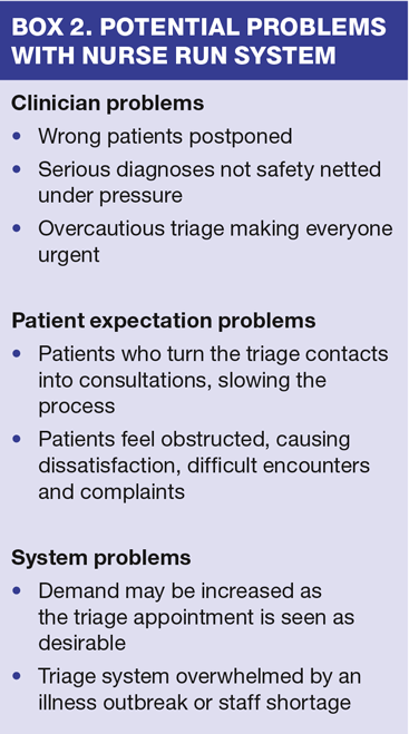 Inevitably, triage will not be perfect so when reviewing the care we have offered if can be useful to look for and classify the problems that may arise. (Box 2)